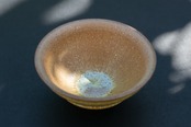 斑点状・針状結晶、乳濁(青白い乳白色)、貫入(細かなヒビ)、禾目(釉薬の流下に伴ってできる縦状の筋)など見て取れます。