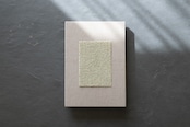 焼成した器を粉砕し粒子状に戻したものを何層にも塗り重ね、絵画として再構築した作品。