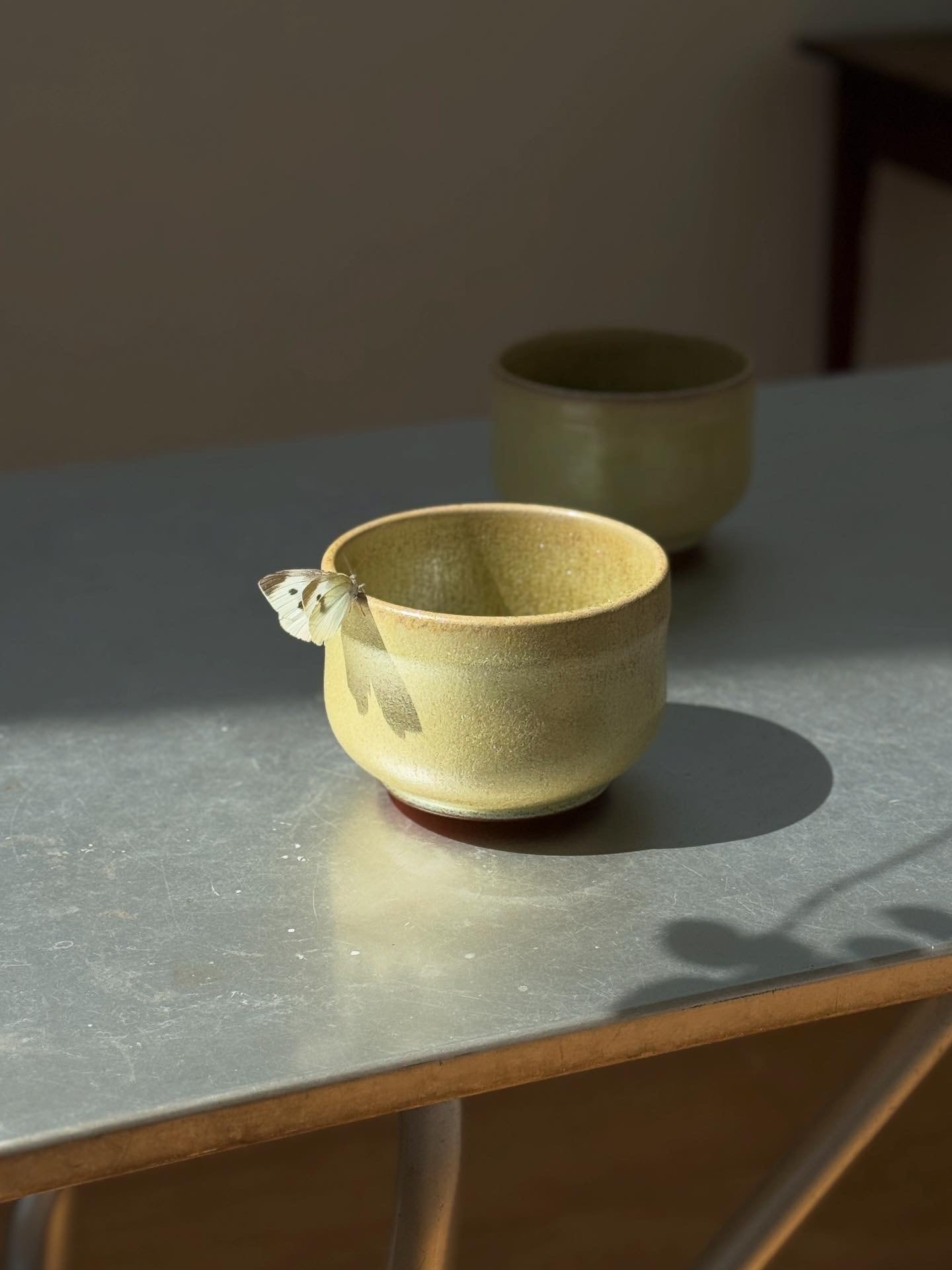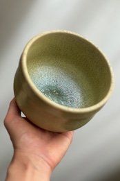 釉薬の流下にともなって縦状の筋があり、微細な結晶・ガラス質・乳濁・マット・貫入が見られます。