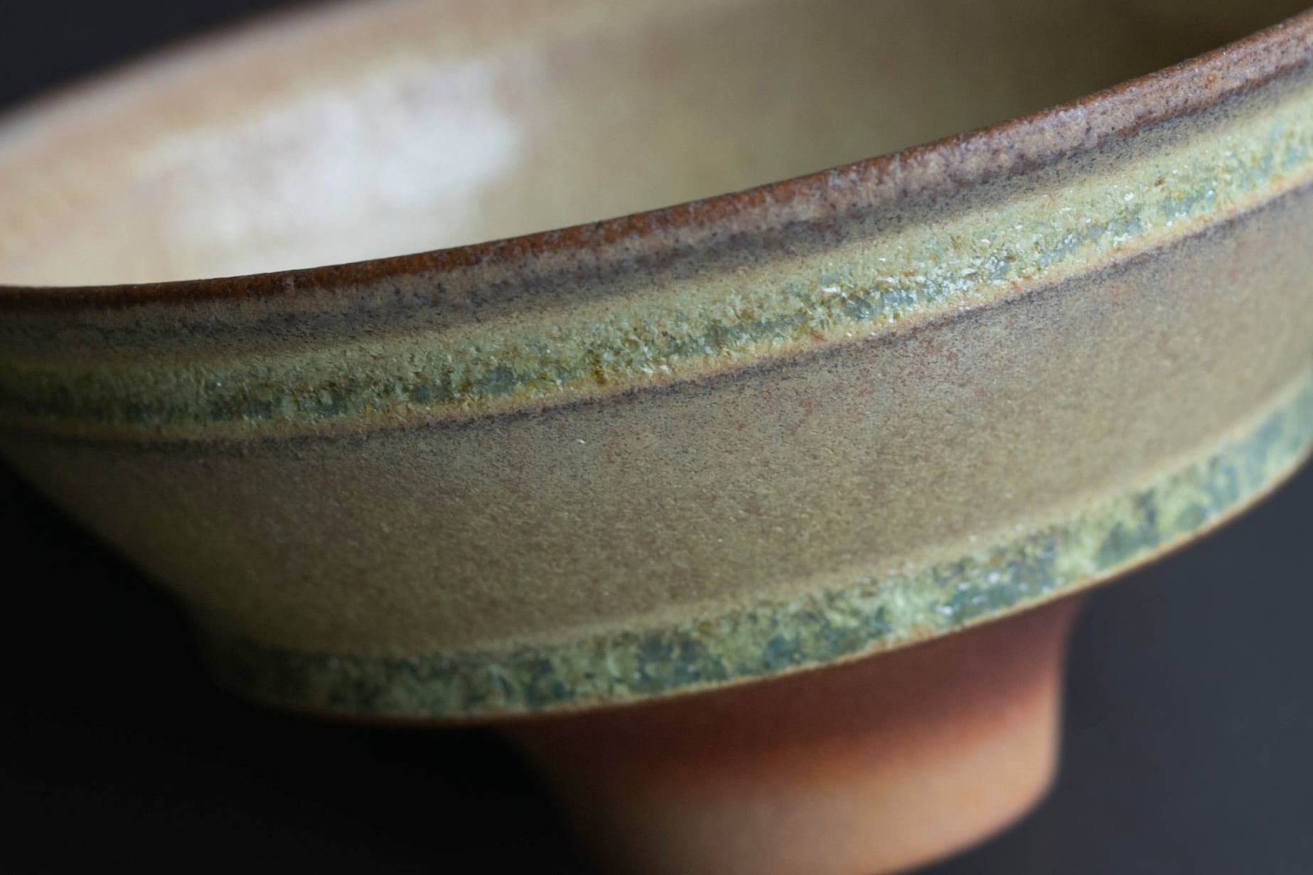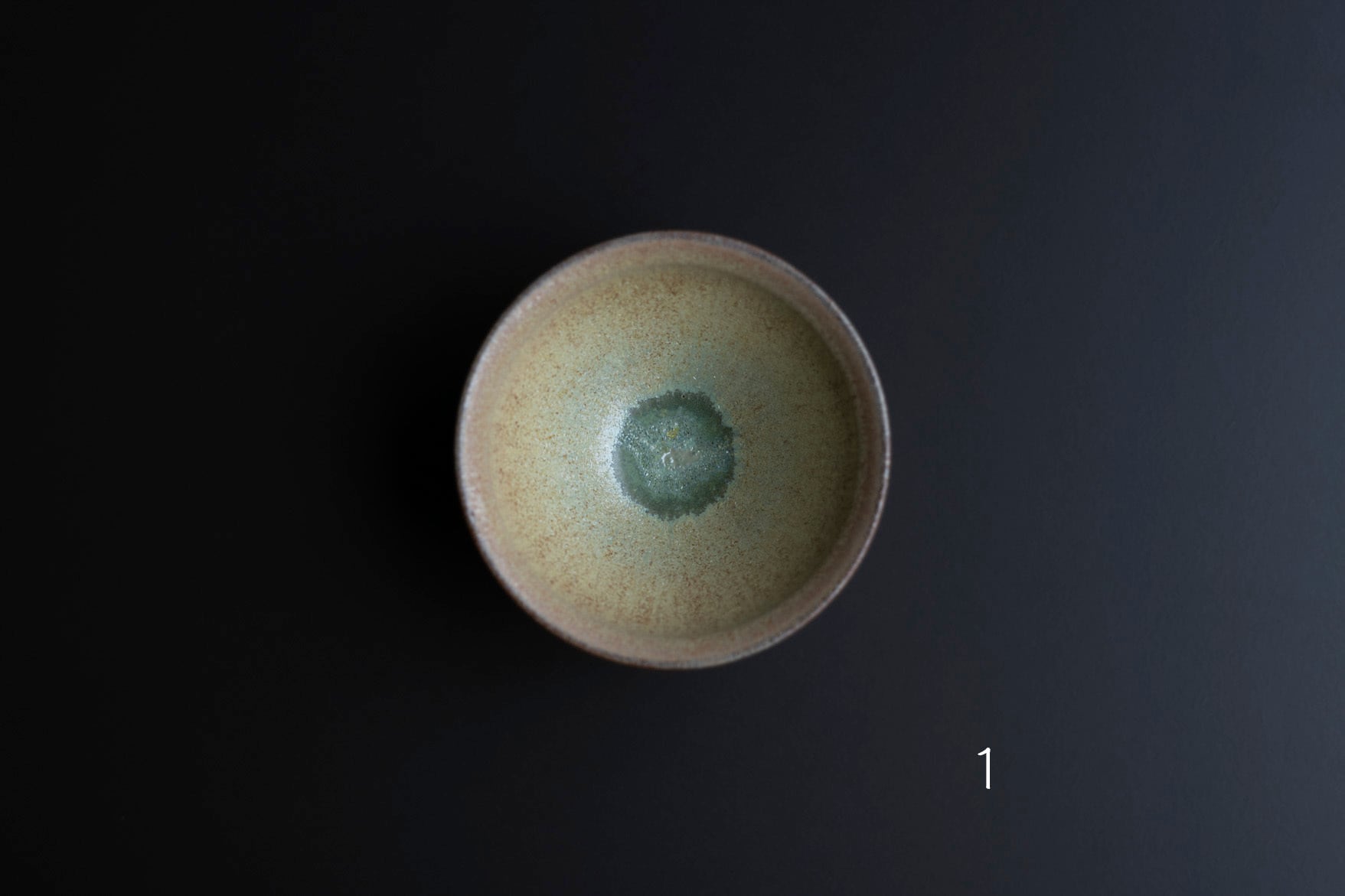 細かな結晶、乳濁(青白い乳白色)、貫入(細かなヒビ)、微かに禾目(釉薬の流下に伴ってできる縦状の筋、気泡痕、緋色などが現れています。